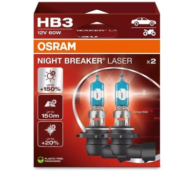 Лампа галогенная OSRAM Автолампа галогенная HB3 (60W P20D +150%) NIGHT BREAKER LASER (евробокс, 2шт) 3200K 12V