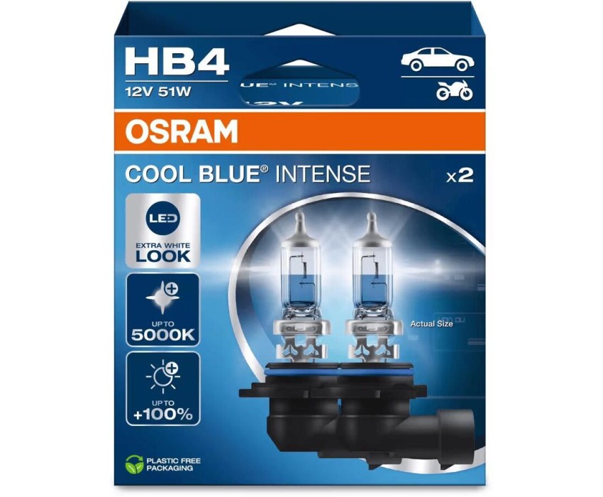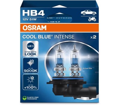 Лампа галогенная OSRAM Автолампа галогенная HB4 (51W P22D +100%) COOL BLUE INTENSE (евробокс, 2шт) 5000K 12V