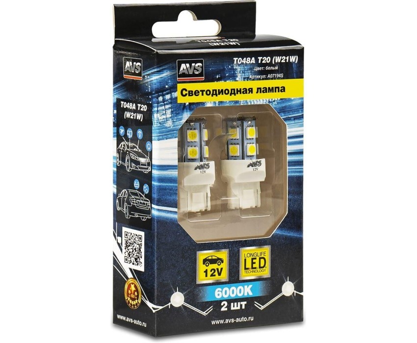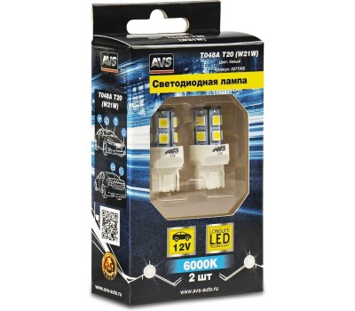 Лампа автомобильная AVS T048A T20/белый/(W3*16d) 13SMD 5050, 1 contact, коробка 2 шт