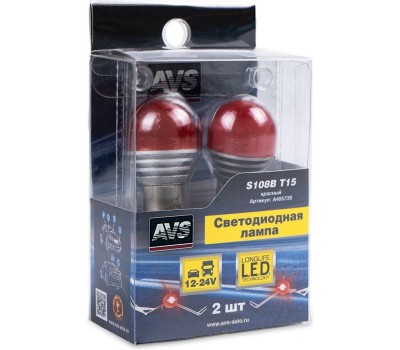 Лампа автомобильная AVS S108B T15/красный/(BAY15d) 6SMD 3030 10-30V 2contact.(1157) коробка 2 шт