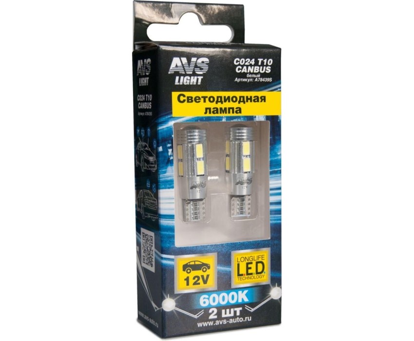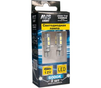 Лампа автомобильная AVS C024 T10/белый/ (W2.1x9.5d)CANBUS 8SMD 5630,блистер 2 шт