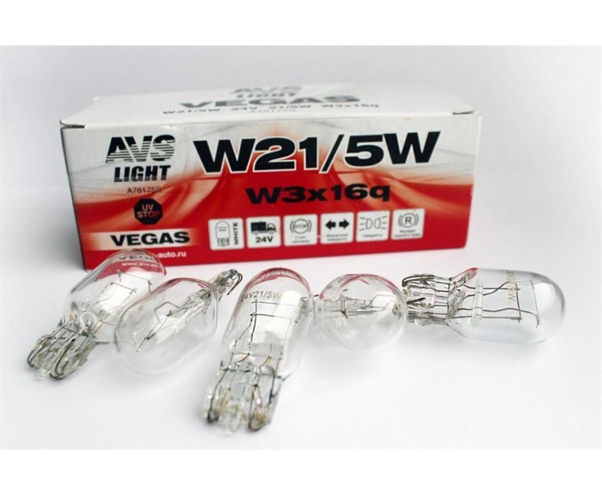 Лампа накаливания AVS Vegas W21/5W Тип цоколя: W3x16q Напряжение: 24 V. Мощность: 21/5 W.