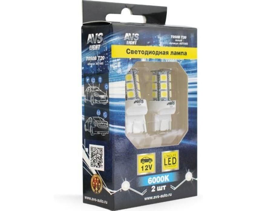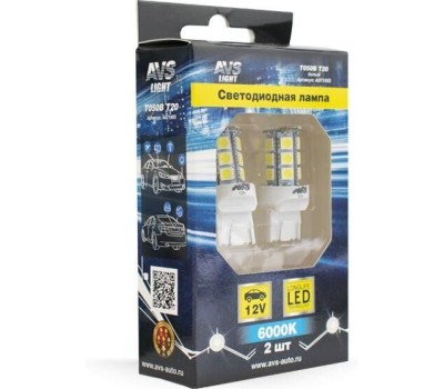 Лампа автомобильная AVS T050B T20/белый/(W3*16q) 18SMD 5050, 2 contact, коробка 2 шт