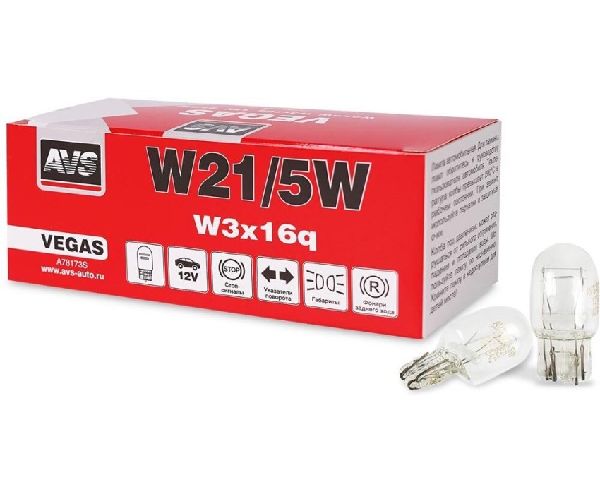 Лампа накаливания AVS Vegas W21/5W Тип цоколя: W3x16q Напряжение: 12 V. Мощность: 21/5 W.