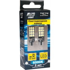 Лампа автомобильная AVS T107 T10/белый/ (W2.1x9.5d) 24SMD 2835, блистер 2 шт