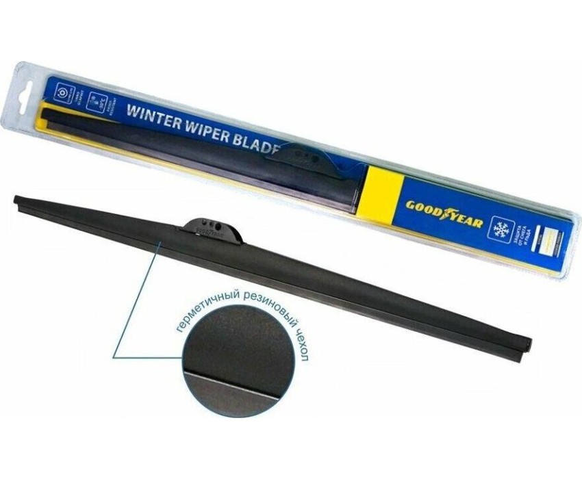 Зимняя щетка стеклоочистителя Goodyear WINTER 18"/45 cm, 4 переходника, В комплект входят переходники под крепления HOOK, Push Button, Side Pin, Bayonet. Благодаря этому стеклоочистители Goodyear «Winter» подходят на 95% всего автопарка России, в том числе на праворульные автомобили. Резиновое лезвие Triple A ( класса ААА) гарантирует качественную очистку стекла при любых погодных условиях. Идеальными для эксплуатации зимних щеток являются температуры от -50…+5° С.