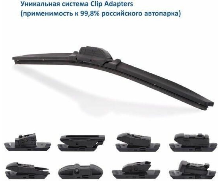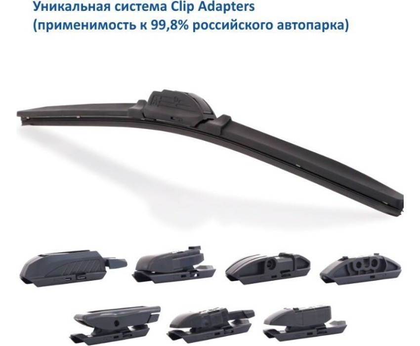 Уникальная система крепления адаптеров Clip Adapters (8 адаптеров на 11 видов крепления) позволяет использовать GOODYEAR PREMIUM на 99,8% всех моделей легковых автомобилей, в том числе с правым рулём Симметричный спойлер уникален в своём классе и выполнен из термопластичного эластомера, что делает его устойчивым к деформациям. Выполнен в виде литой конструкции и не имеет боковых заглушек, что значительно снижает обмерзание краёв щётки. Конструкция крепления лезвия имеет не только металлическую пластину на которой крепится лезвие, но и две дополнительные направляющие из нержавеющей стали, которые обеспечивают более прочное крепление резинового лезвия. Резиновое лезвие класса Triple A (ААА). Лезвие проходит процедуру полировки удаление шероховатостей поверхности.