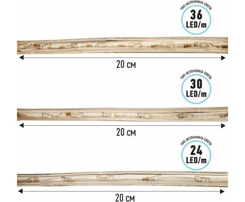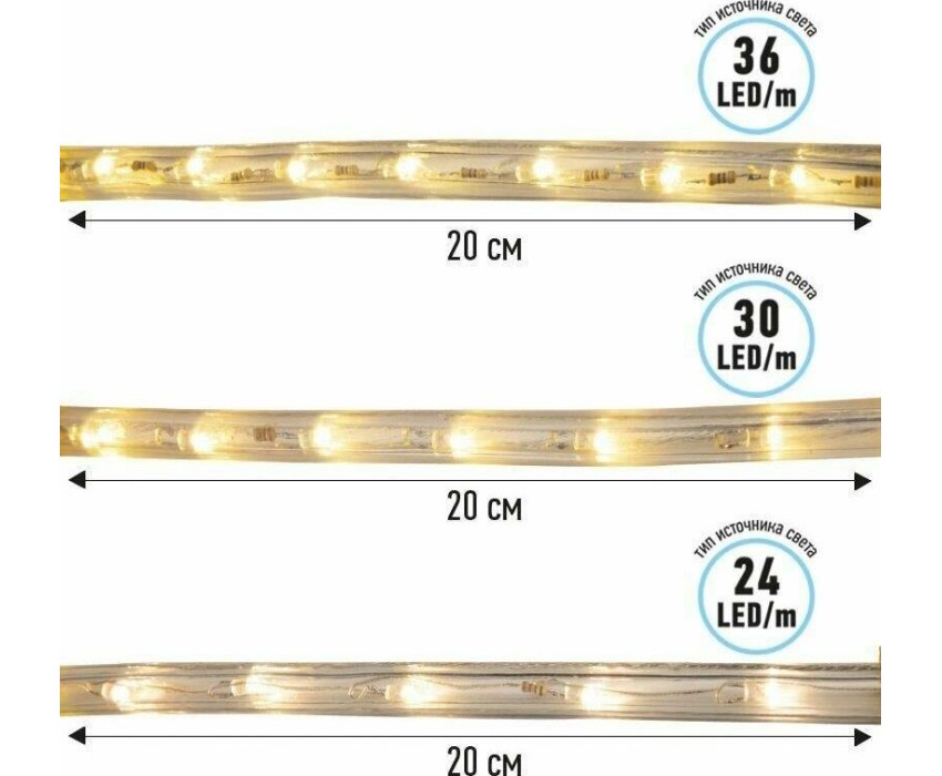 Лента светодиодная NEON-NIGHT Дюралайт LED трехжильный 230В 13мм 36 LED/м БЕЛЫЙ свечение с динамикой модуль 1м бухта 100м