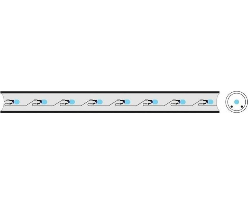 Дюралайт синего свечения представляет собой шнур, предназначенный для декоративной и архитектурной подсветки объектов. Изделие выполнено из ПВХ трубки с токопроводящими жилами и светодиодами внутри. Данный тип дюралайта имеет 2 жилы и работает в режиме мерцания. В составе нашего дюралайта используются морозостойкие добавки, благодаря чему он отличается гибкостью, высокой прочностью и может быть использован даже в самых суровых климатических условиях. Дюралайт режется кратно 1 метру, при этом модуль резки залит морозостойким силиконовым герметиком, что обеспечивает защиту от образования конденсата внутри светового шнура. В комплекте поставляется 1 шнур питания с диодным мостом, позволяющий подключить до 100 метров дюралайта.