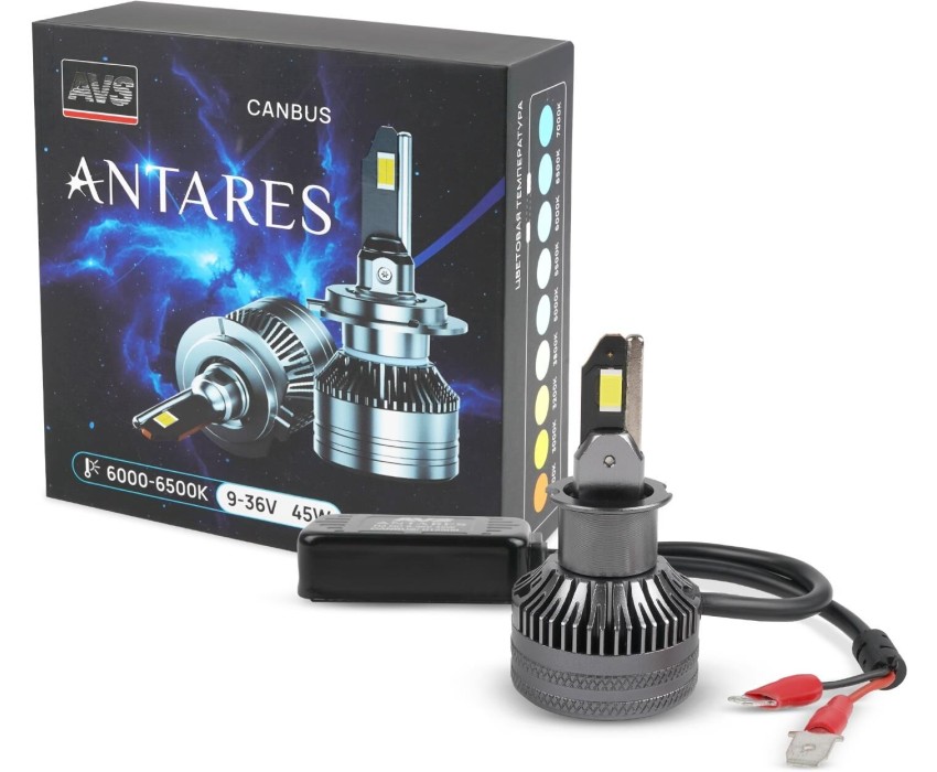 Светодиодные лампы головного света ANTARES — выбор для тех, кто ценит сбалансированные характеристики и эффективность. Лампы общей мощностью 90 Вт обеспечивают уверенную и комфортную видимость на дороге. Широкий рабочий диапазон напряжения 9-36 вольт позволяет устанавливать лампы как в легковые, так и в грузовые автомобили. Интегрированный модуль Canbus позволяет избежать ошибок на 95% авто. Система охлаждения с медной трубкой и вентилятором активно отводит тепло, что увеличивает срок службы светодиода. На всю линейку действует расширенная гарантия 2 года*. Цоколь: PK22s Мощность: 45W (х2) Напряжение: 9-36 V Цветовая температура: 6000-6500 K Яркость: 7000 Lm Охлаждение: медная трубка + вентилятор Комплект: 2 шт * Претензии по качеству рассматриваются при предъявлении правильно заполненного гарантийного талона (гарантийный талон с указанной датой продажи, печатью продавца и документом об оплате).