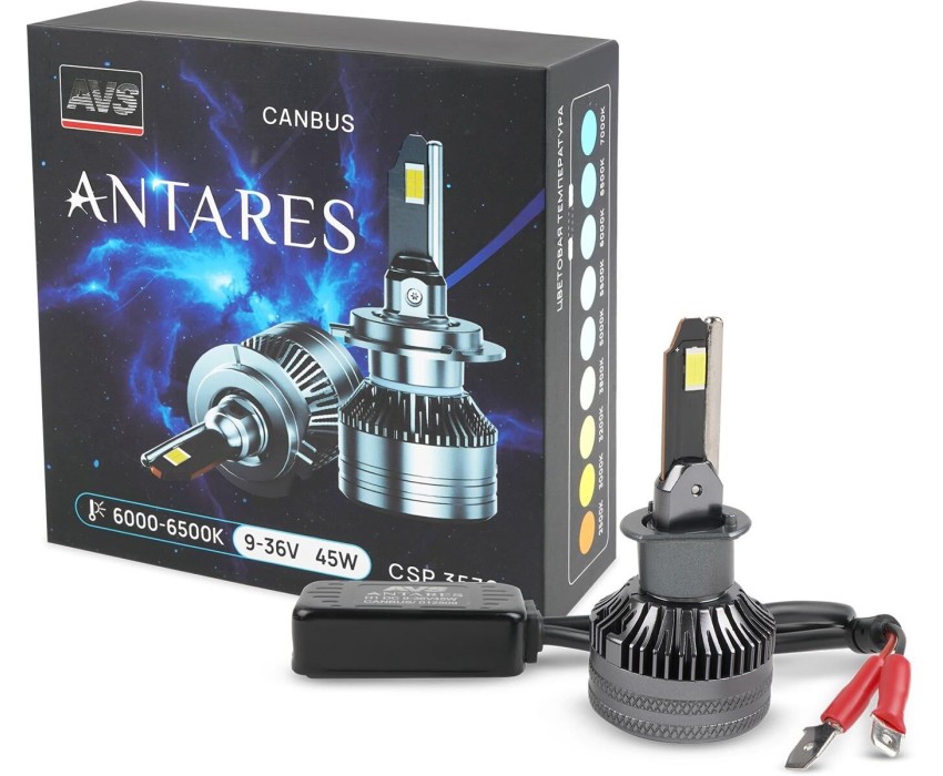 Светодиодные лампы головного света ANTARES — выбор для тех, кто ценит сбалансированные характеристики и эффективность. Лампы общей мощностью 90 Вт обеспечивают уверенную и комфортную видимость на дороге. Широкий рабочий диапазон напряжения 9-36 вольт позволяет устанавливать лампы как в легковые, так и в грузовые автомобили. Интегрированный модуль Canbus позволяет избежать ошибок на 95% авто. Система охлаждения с медной трубкой и вентилятором активно отводит тепло, что увеличивает срок службы светодиода. На всю линейку действует расширенная гарантия 2 года*. ECE: H1 Цоколь: P14.5s Мощность: 45W (х2) Напряжение: 9-36 V Цветовая температура: 6000-6500 K Яркость: 7000 Lm Охлаждение: медная трубка + вентилятор Комплект: 2 шт * Претензии по качеству рассматриваются при предъявлении правильно заполненного гарантийного талона (гарантийный талон с указанной датой продажи, печатью продавца и документом об оплате).