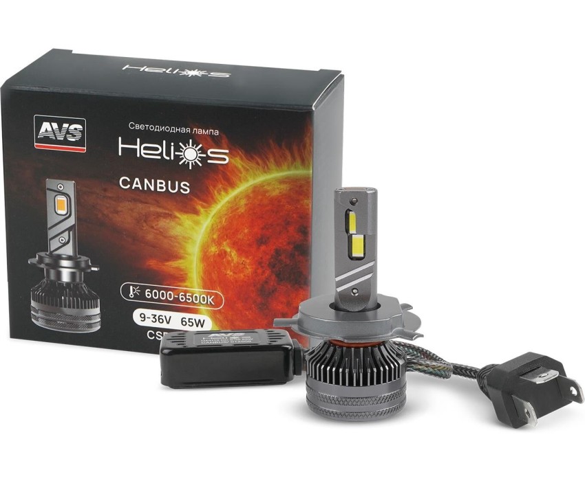 Светодиодные лампы головного света HELIOS — выбор для тех, кто ищет максимальную яркость и надежность. Общая мощность комплекта 130 Вт значительно превосходит стандартные модели. Широкий рабочий диапазон напряжения 9-36 вольт позволяет устанавливать лампы как в легковые, так и в грузовые автомобили. Интегрированный модуль Canbus позволяет избежать ошибок на 95% авто. Система охлаждения с двумя медными трубками и вентилятором активно отводит тепло, что увеличивает срок службы светодиода. На всю линейку действует расширенная гарантия 2 года*. ECE: H4/H19 Цоколь: P43t/PU43t-3 Мощность: 65W (х2) Напряжение: 9-36 V Цветовая температура: 6000-6500 K Яркость: 9800 Lm Охлаждение: 2 медные трубки + вентилятор Комплект: 2 шт * Претензии по качеству рассматриваются при предъявлении правильно заполненного гарантийного талона (гарантийный талон с указанной датой продажи, печатью продавца и документом об оплате).