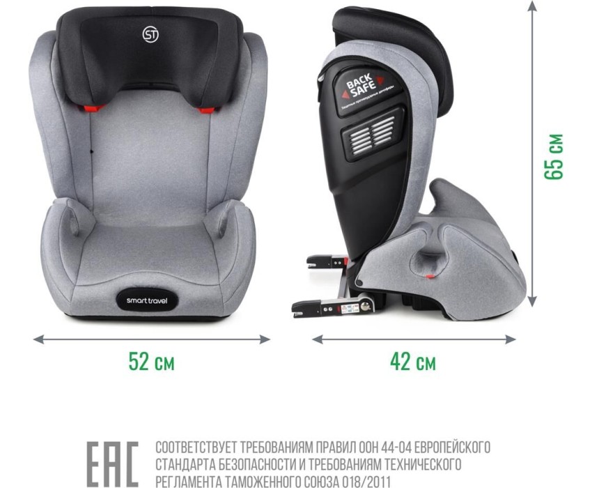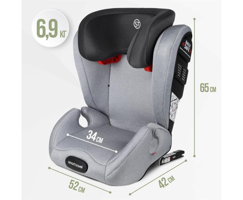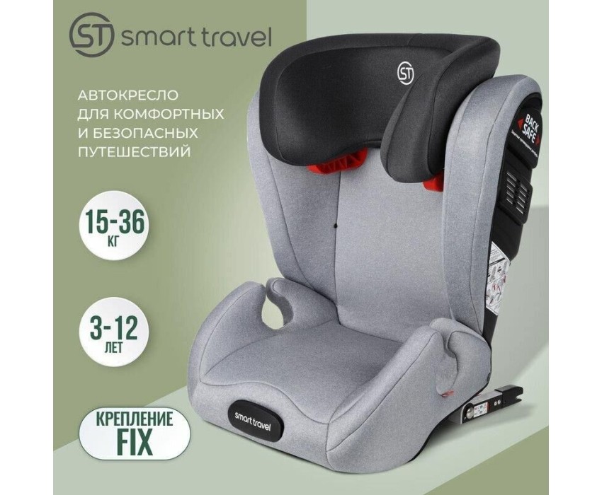 Автокресло детское SMART TRAVEL УУД Expert Fix гр.II/III, Light grey