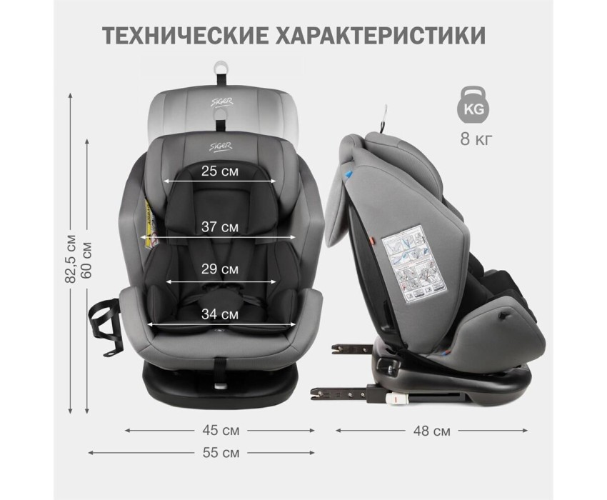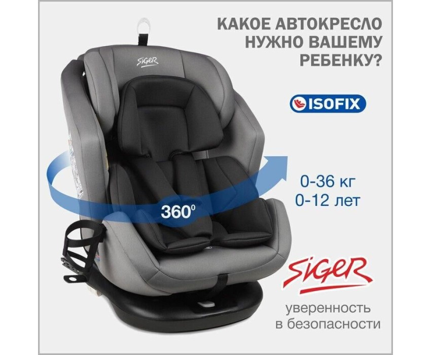 Автокресло детское SIGER УУД Ультра Isofix гр.0+/I/II/III, св.серый