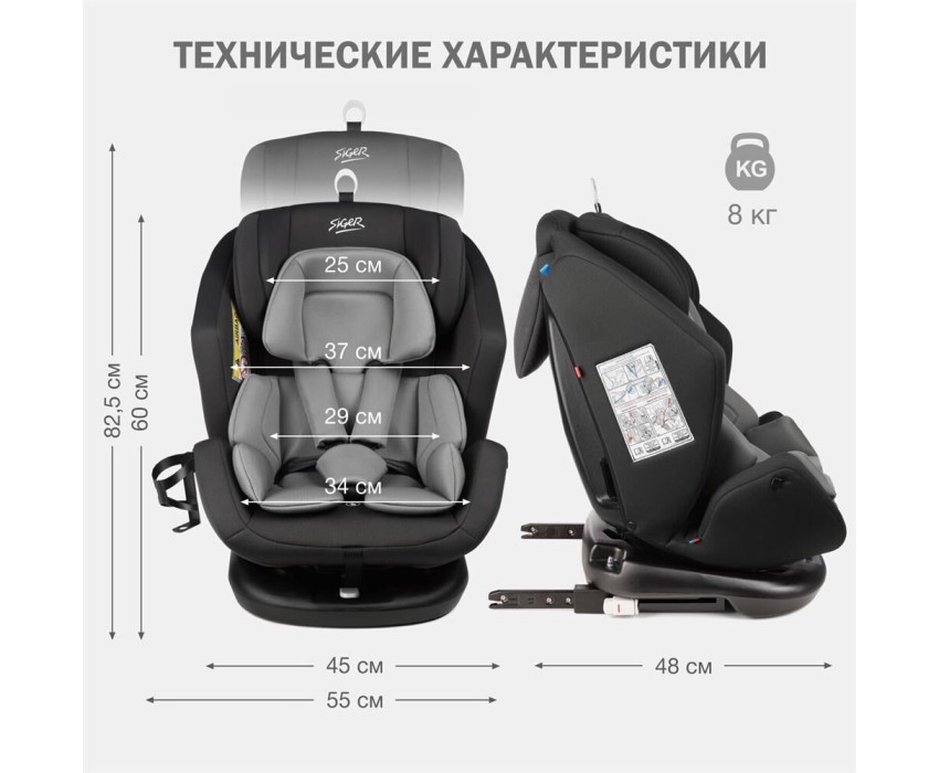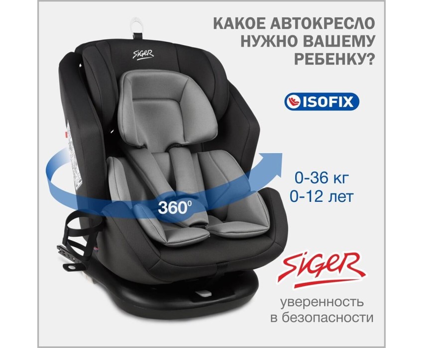 Автокресло детское SIGER УУД Ультра Isofix гр.0+/I/II/III, т.серый