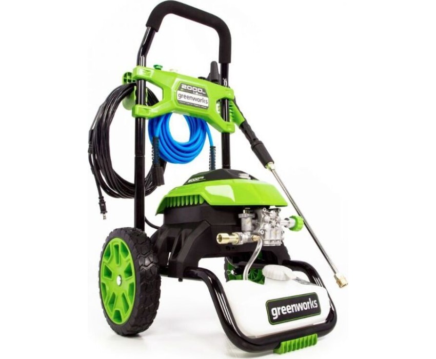 Мойка высокого давления Greenworks (модель GHP2000) — применяется для мойки авто/мото техники, придомовых территорий, дорожек, площадок, садового инвентаря и т.д. Двигатель с медной обмоткой и потреблением 2000 Вт. Помпа из алюминия с поршнем из нержавеющей стали обеспечивает максимальное давление 140 бар и производительность равную 360 л/час. Для защиты авто мойки от разрушения помпы в следствии нагнетания излишнего давления, предусмотрена система «FullStop» — полное отключение при отпускании курка пистолета распылителя, также предусмотрен автоматический перепускной клапан со сбросом давления. Коннекторы пистолета быстро зажимные для удобной смены насадок. Пистолет-распылитель усилен и оснащается распылителем из стали. На металлическом корпусе предусмотрены места для хранения электрического провода, шланга и пистолета. Мойка оснащена баком с автоподачей моющего средства. Для удобства транспортировки мойка оснащена большими прорезиненными колесами.