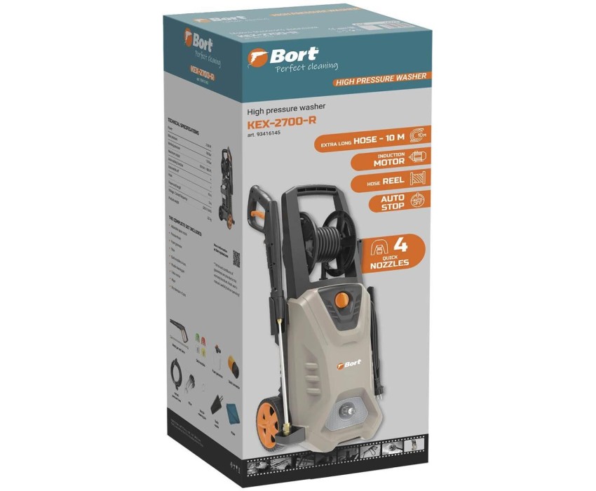 Мойка высокого давления; Потребляемая мощность 2500 Вт; Максимальное давление 190 бар; Рабочее давление 150 бар; Материал корпуса насоса Силумин;Максимальная производительность 480 л/час; Функция автоматического всасывания; автостоп; Шланг 10 м; Длина шнура питания 5 м; Напряжение 220 В; Частота тока 50 Гц; Вес изделия 19,4 кг; Вес брутто=22 (Вес нетто=20,5) кг; 49 x 36 x 56; набор аксессуаров 11 шт; Индукционный мотор, Функция самовсасывания, Автоматическое отключение при перегреве., Увеличенная длина шланга 10 м; гарантия 2 г