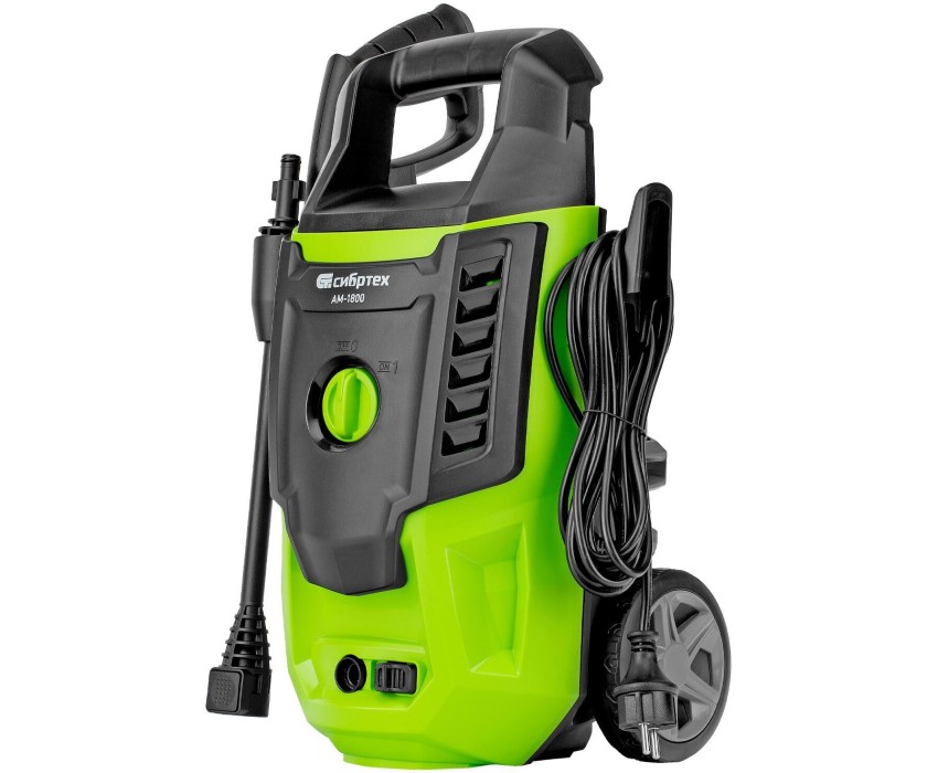Мойка высокого давления СИБРТЕХ Моечная машина высокого давления АМ-1800, 1800 Вт, 140 бар, 350 л/ч, колесная 58226