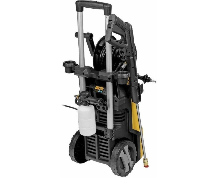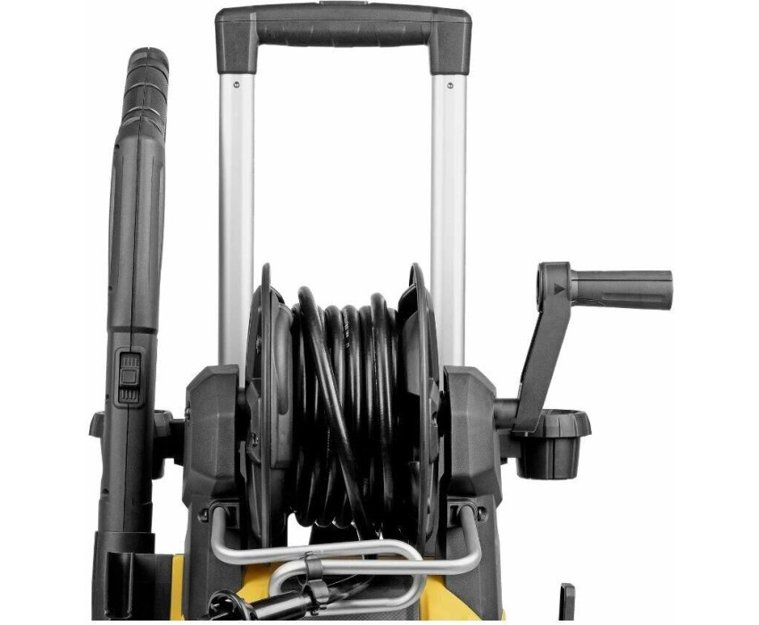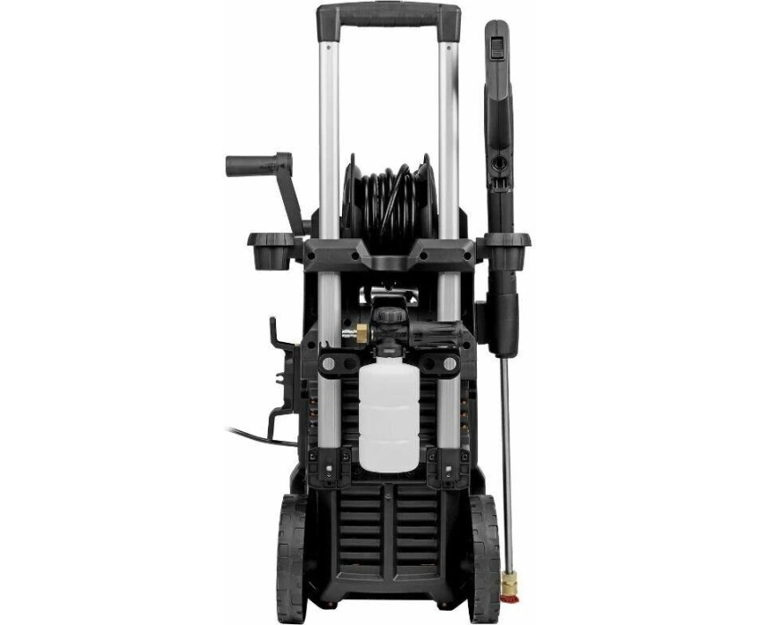 Моечная машина высокого давления Denzel R-180iD 58266 мощностью 2000 Вт, с барабаном и асинхронным двигателем, используется для мытья дорожек, тротуаров, фасадов зданий, автомобилей, окон, садовой мебели и инвентаря. Максимальное давление составляет 180 бар, производительность — 420 л/ч. Мойка подключается к водопроводной сети, а в случае ее отсутствия может забирать воду из любого открытого резервуара, работая в режиме самовсасывания. Надежная алюминиевая помпа со стальными плунжерами обеспечивает стабильное давление даже при длительном интенсивном использовании. Мойка высокого давления незаменима на дачном участке. Преимущества Надежность — асинхронный двигатель устойчив к нагрузкам и не требует сложного обслуживания. Максимально эффективное очищение — к мойке прилагается внешний пенокомплект с функцией улучшенного пенообразования, быстросъемное крепление позволяет устанавливать его на пистолет одним движением. Выбор оптимального угла распыления — машина поставляется с 3 насадками: 0°, 25° и 40°. Быстрая подготовка к работе — быстросъемный адаптер упрощает подключение шланга подачи воды. Качественная фильтрация — посторонние частицы задерживаются на входе, что защищает помпу от поломки. Защита от случайного пуска — перед началом работы необходимо разблокировать рычаг моечного пистолета. Защита от превышения допустимого давления — машина оснащена перепускным клапаном, пневматическое реле останавливает насос при отпущенном рычаге пистолета и запускает после нажатия на курок.…