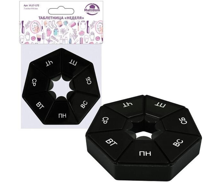 MULTIDOM Таблетница "Неделя". Размер 8х8х1,5 см. VL17-172