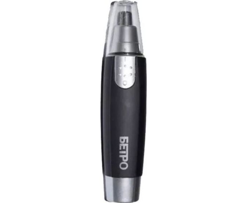 Триммер для стрижки волос в носу и ушах. Безопасная конструкция, мягкое покрытие ручки гарантирует легкое управление, в комплекте защитный колпачок и щеточка для чистки., Питание: батарейка 1.5В тип АА.