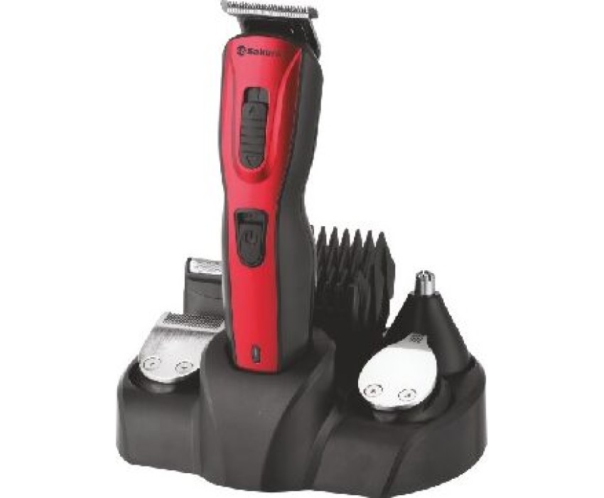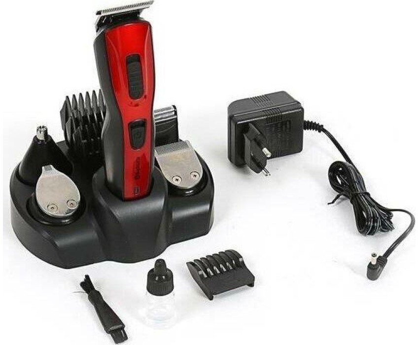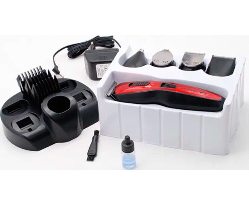 Триммер универсальный для бороды, усов, бровей, ушей, носа, висков и т.д., 10 насадок в комплект (5 гребней 3-12 мм, круглая насадка-триммер, 3 плоские насадки, насадка-бритва). 3-ступенчатая регулировка лезвий, автономная работа от аккумулятора до 50 ми