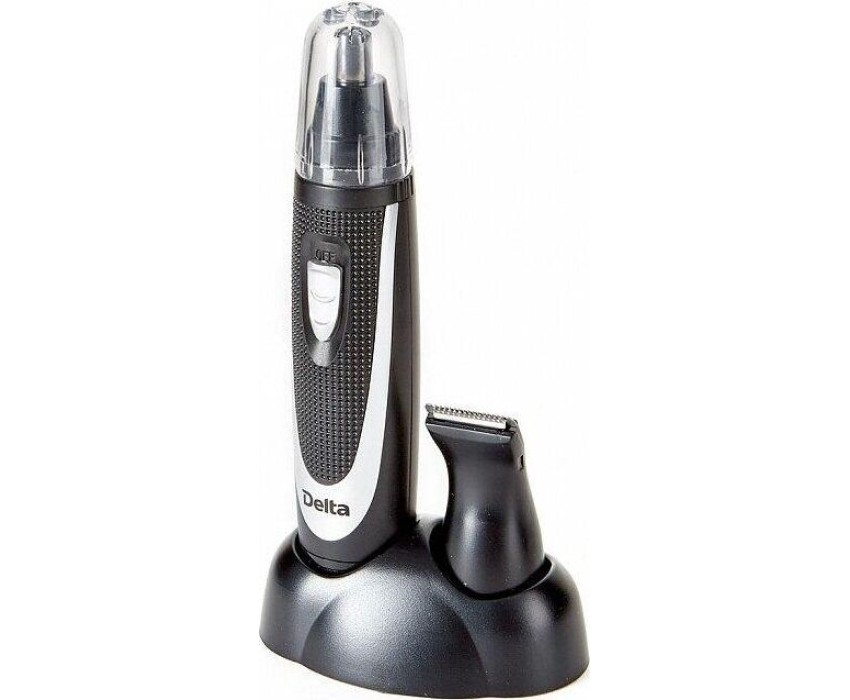DELTA DL-4301 Параметры В комплекте 2 съемные насадки: насадка для носа, ушей и бровей 1 штука насадка для висков, бороды и усов 1 штука Номинальная потребляемая мощность 2 Вт Описание Бережное удаление нежелательных волосков Компактный размер триммера позволяет брать его с собой в дорогу Низкий уровень шума Простота использования Корпус из высококачественного пластика Цвет: черный с серебристым Лезвия из нержавеющей стали Защитная крышка Щеточка для чистки Подставка для хранения Электропитание: 2 батареи АА 1,5 В (в комплект поставки не входят)