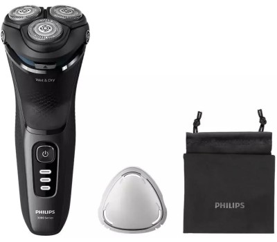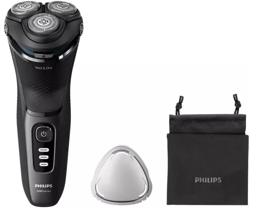 Электробритва для влажного и сухого бритья, роторная, Серия 3000, Время автономной работы 60 мин, 1 час полной зарядки, 5D система повторений контуров лица, лезвия PowerCut, технология SkinProtect, в комплекте: зарядный кабель, защитная крышка, чехол, Ц