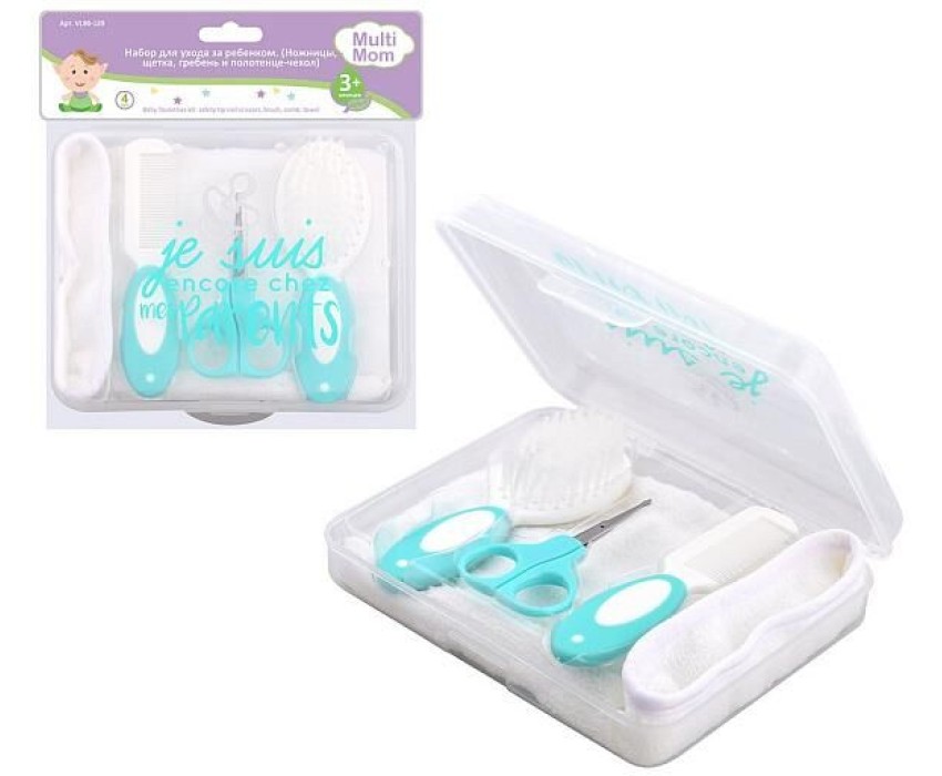 MULTIDOM Набор для ухода за ребенком. 4 предмета. (Ножницы, щетка, расческа и мочалка) VL90-139