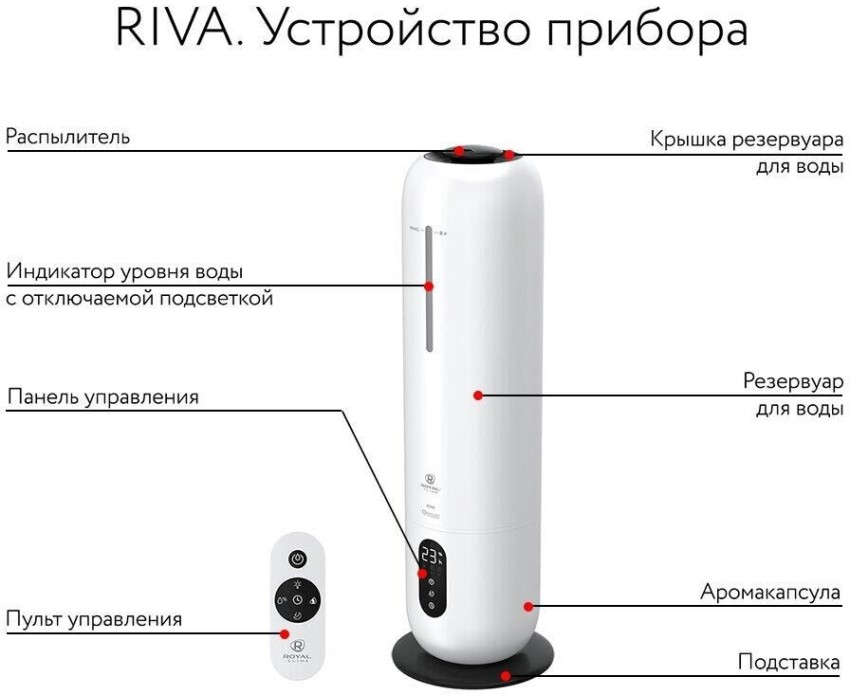 Увлажнитель воздуха ROYAL CLIMA RUH-RV300/8.0E-WT ультразвуковой, 8л, белый/черный