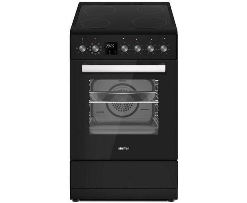 Независимая электрическая соло плита 50х60 • Цвет: черная эмаль Поверхность: • Стеклокерамическая варочная поверхность • 4 стеклокерамические конфорки - 2 -Кpyглaя зона нагрева 140 MM - 2 -Кpyглaя зона нагрева 180 MM • Управление: утапливаемые переключатели Духовой шкаф: • Электрическая духовка • Цифровой программатор с функцией автоматического отключения • Количество режимов работы: 9 • Электрический термостат • Полезный объем: 47 л • Эмаль легкой очистки “Easy Clean” • Двойное остекление дверцы “Cool touch” + Low-e • Подсветка внутренней камеры духовки • Хромированные направляющие • Выдвижной ящик для посуды Комплектация: 1 стандартный противень 1 хромированная решётка 1 круглый Diamond противень