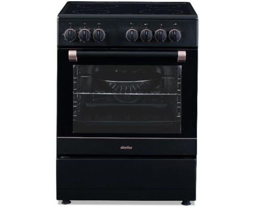 Независимая электрическая соло плита 60х60 • Цвет: антрацит • Цвет переключателей — чёрный с декоративным розово- золотым обрамлением. • Декоротивный кант розовое золото Поверхность: • Стеклокерамическая варочная поверхность • 4 стеклокерамические конфорки - 2 -Кpyглaя зона нагрева 140 MM - 2 -Кpyглaя зона нагрева 180 MM • Управление: поворотные переключатели Духовой шкаф: • Электрическая духовка • Механический таймер 90 минут • Количество режимов работы: 9 • Электрический термостат • Полезный объем: 60 л • Эмаль легкой очистки “Easy Clean” • Двойное остекление дверцы “Cool touch” + Low-e • Подсветка внутренней камеры духовки • Хромированные направляющие Комплектация: 1 стандартный противень 1 хромированная решётка 1 круглый Diamond противень