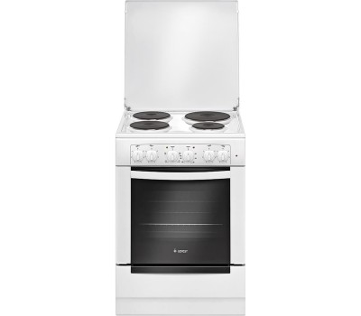 Габариты, ШхГхВ, см: 60x60x85; Цвет: белый; Дизайн: классический; Ширина, см: 60; Фасад: эмалированный; Варочная поверхность: эмалированная; Крышка стола: металлическая крышка; Количество зон приготовления: 4; Класс энергоэффективности: А; Диапазон номинальных напряжений, В: 220-230; Номинальная потребляемая мощность электроэнергии, кВт: 5,5-6,02; Объем духовки, л: 55; Мощность верхнего ТЭН духовки, кВт: 0,8; Мощность нижнего ТЭН духовки, кВт: 1,2; ТЭН-гриль: 1,2; Управление: механическое; Гриль: электрический; Подсветка духовки: одинарная; Направляющие духовки: штампованные; Терморегулятор; Ящик для посуды и принадлежностей: выдвижной ящик; Ножки регулировочные; Сетевой шнур и вилка: в наличии; Комплектность: решетка духовки, жаровня 2 шт.