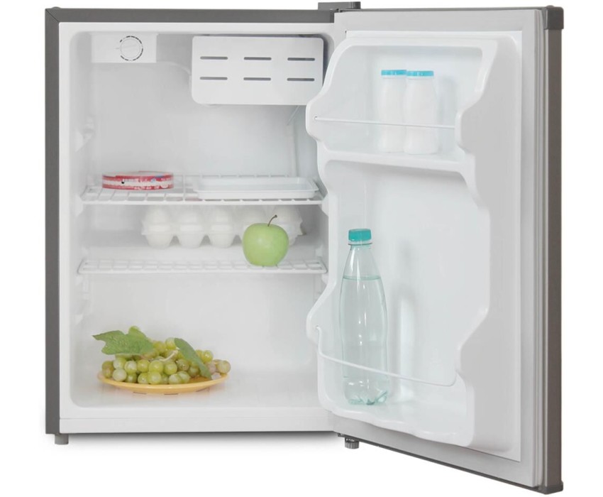 Габариты (ВхШхГ): 63х44,5х51см; Тип управления: механический; Количество компрессоров: 1; Корректированный уровень звуковой мощности (не более), дБа: 42; Хладагент: R-600a; Номинальная потребляемая мощность, Вт; 70; Потребление энергии при температуре окружающего воздуха 25°C (не более), кВт*ч/24ч: 0,3; Класс энергетической эффективности: A+; Средняя температура в холодильной камере,°C: 4; Ручная система оттаивания холодильной камеры; Перенавешиваемые дверцы; Встроенная ручка; Цвет: металлик