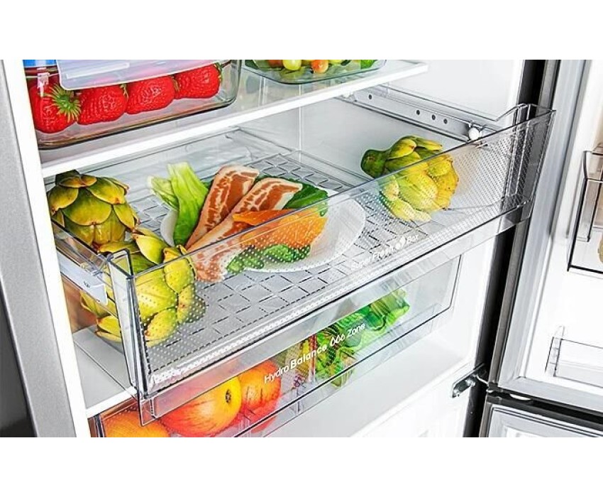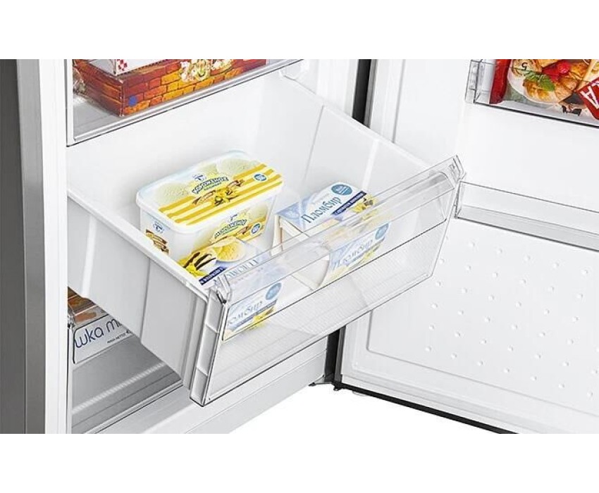Двухкамерный с нижней морозильной камерой. Габариты Ш/Г/В 595/660/1968мм. Общий объём 368л. Вес 77 кг. Система охлаждения FULL NO FROST. Цвет корпуса серебристый. Класс энергоэффективности А+. Уровень шума 42 дБА. Климатический класс SN, N, ST. Внутреннее LED освещение. Электронный блок управления и индикации. Тип ручки скрытая. Полный полезный объем 329л. Полезный объем холодильной камеры 235 л. Полезный объем морозильной камеры 94 л. Самодиагностика. Температура хранения свежих продуктов, до 8 °C. Средняя температура хранения свежих продуктов 4 °C. Функция Отпуск, суперохлаждение, звуковая сигнализация. Номинальное время повышения температуры продуктов от -18 °C до -9 °C при отключении электроэнергии 15 ч. Температура хранения замороженных продуктов в морозильной камере -18 °C. Мощность замораживания при температуре окр. среды +25°С – 10кг/сутки. Функция быстрого замораживания. Функция охлаждения напитков.