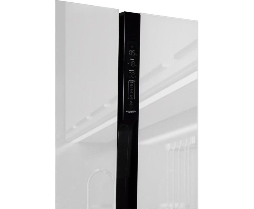 Холодильник Side-by-Side. Полезный объём: 552 л. Полезный объем холодильной камеры: 329 л. Полезный объем морозильной камеры: 223л. Универсальное отделение (от -4 до 8) Система размораживания Nofrost. Тип управления: сенсорное управление (внешний дисплей). Уровень шума 43dB(A). Класс энергопотребления: А+. Цвет: белое стекло. Инверторный компрессор. Габаритные размеры в*ш*г, см: 183.0*91.1*65.6. Вес нетто/брутто: 86 / 96 кг. Инверторный компрессор. Гарантия 2 года