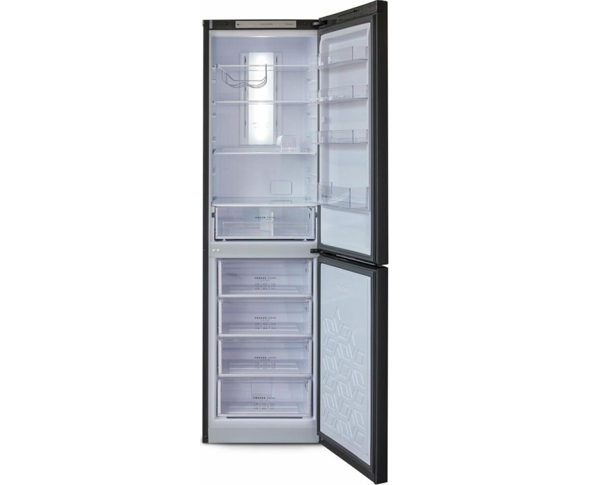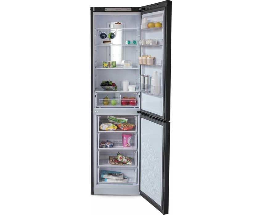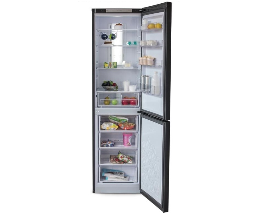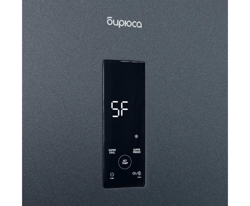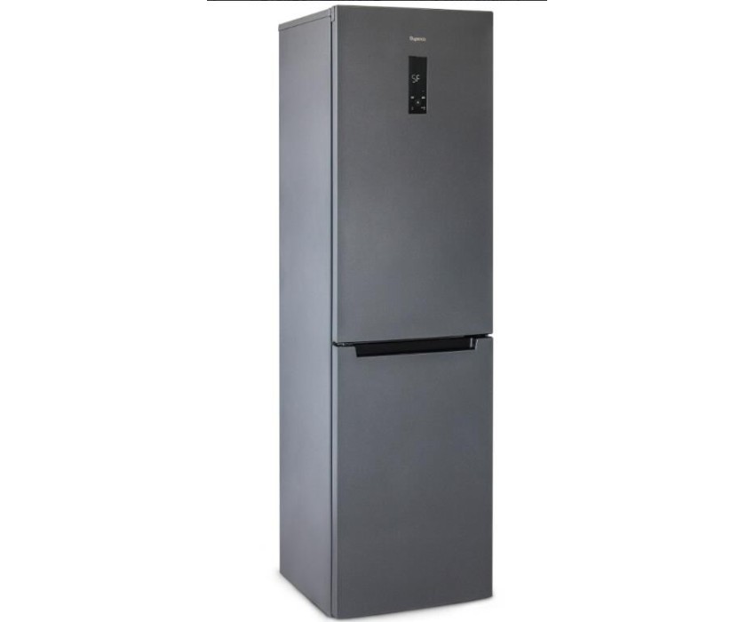 Двухкамерный холодильник с нижней морозильной камерой с системой Full No Frost с дисплеем на двери • цвет Матовый графит • LED дисплей на двери • система охлаждения Multi Air Flow • регулировка влажности Humidity control • единая зона для овощей и фруктов Fresh Zone с разделителем • полка для бутылок, масленка • LED освещение • электронное управление • габариты 207х60х62,5см • объем 370/240/130л