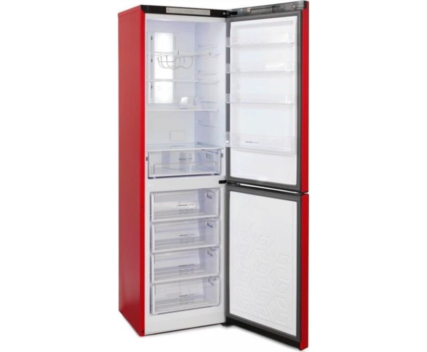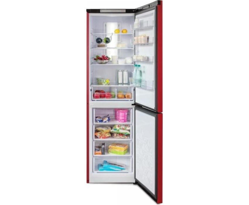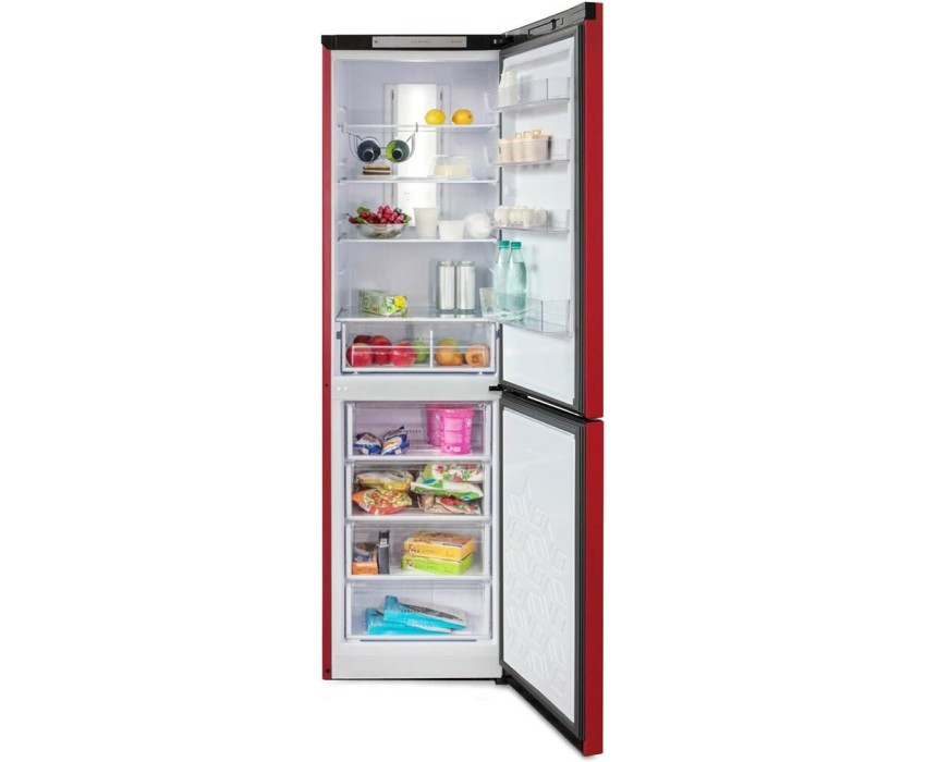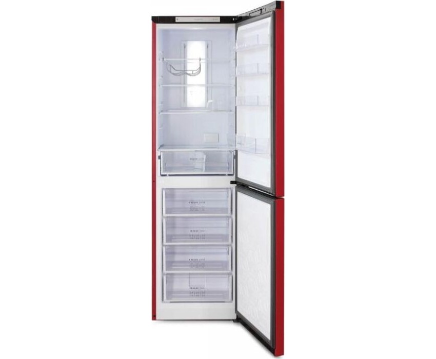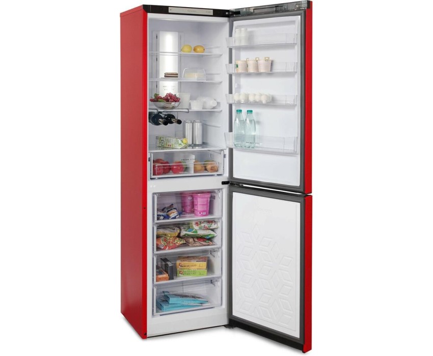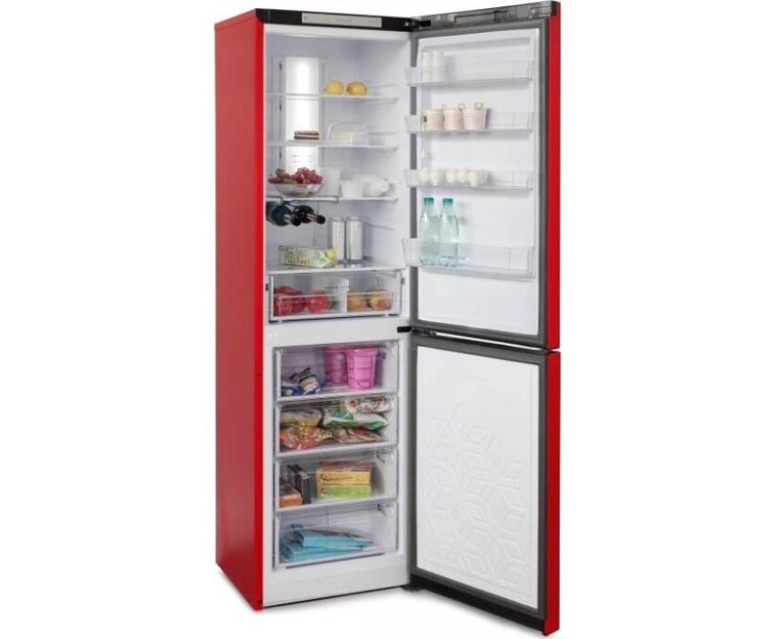 Двухкамерный холодильник с нижней морозильной камерой; Габариты: 207х60х62,5см; Объем: 370/240/130л; Система Full No Frost; Цвет Красный; LED дисплей на двери; Система охлаждения Multi Air Flow; Регулировка влажности Humidity control; Единая зона для овощей и фруктов Fresh Zone с разделителем; Полка для бутылок, масленка; LED освещение