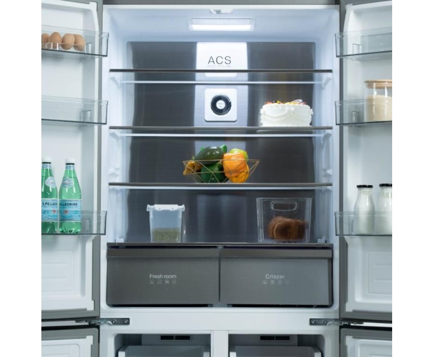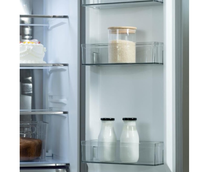 Многокамерный холодильник с текстурированным белым стеклом; Система Full No Frost; Dual Inverter: инверторные компрессор и вентилятор; Класс энергоэффективности А++; Система распределения воздушных потоков MultiFlow; Технология охлаждения Metal Cooling; Деодорирующий фильтр Nano Ag+; Габариты: 189x83,3x66см; Объем: 496/334/162л
