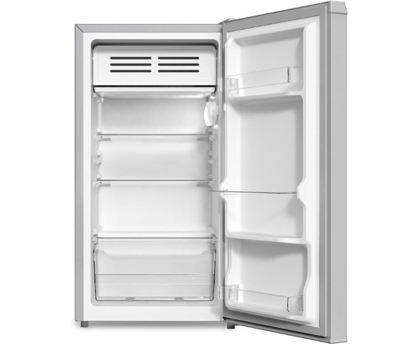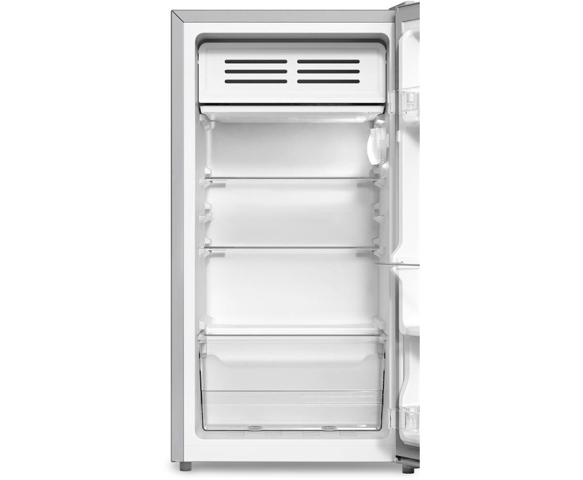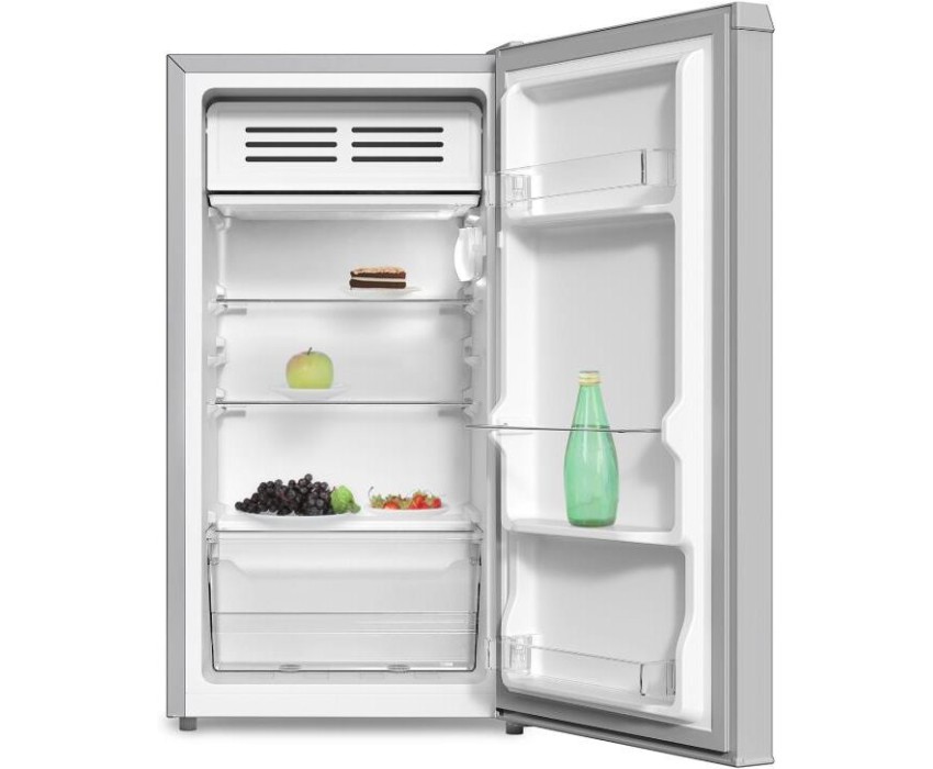 Габариты ВхШхГ: 85x44,4x45,6см; Цвет: Металлик; Управление: Механическое; Общий объем: 86л; Общий полезный объем: 83л; Оттаивание холодильной камеры: ручное; Материал полок: cтекло; Количество ящиков в холодильном отделении: 1; Суточный расход электроэнергии, при температуре окружающего воздуха 24°C: 3 кВтч; Количество полок в холодильном отделении: 3; Температура в отделении для хранения свежих пищевых продуктов: От 2 до 8 °C; Климатический класс: SN,N,ST,T; Максимальный уровень шума: 41 дБ; Количество компрессоров: 1; Количество камер: 1; Класс энергоэффективности: A+; Комплектация: Ящик для овощей и фруктов