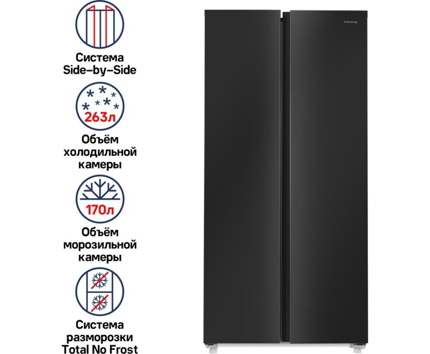 Холодильник MAUNFELD Холодильник двухкамерный MFF177NFBE Total No Frost, Side by Side, инверторный черный