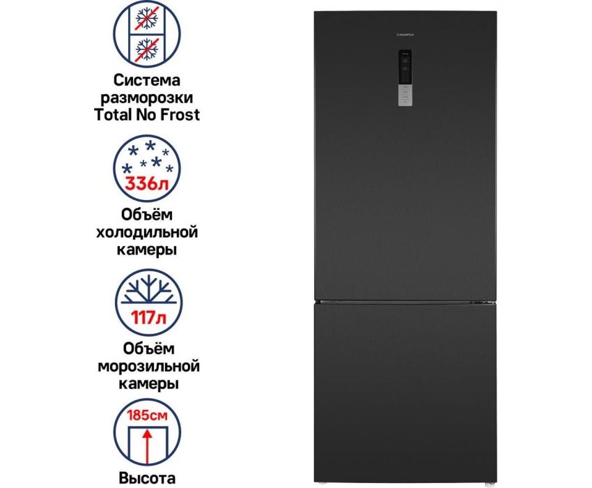 Холодильник MAUNFELD Холодильник двухкамерный MFF1857NFSB инверторный черный