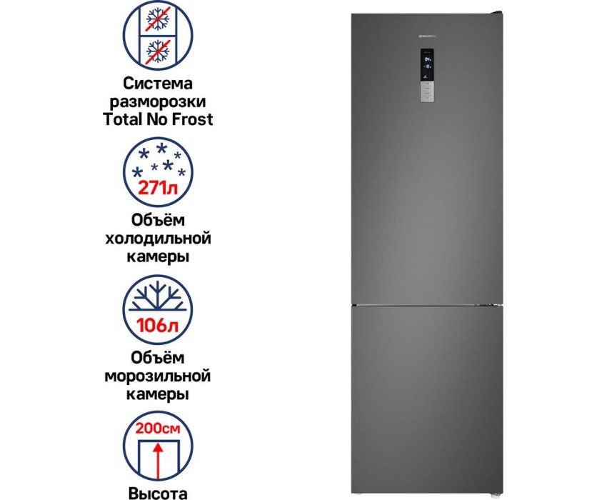 Холодильник MAUNFELD Холодильник двухкамерный MFF200NFSE Total No Frost, нержавеющая сталь