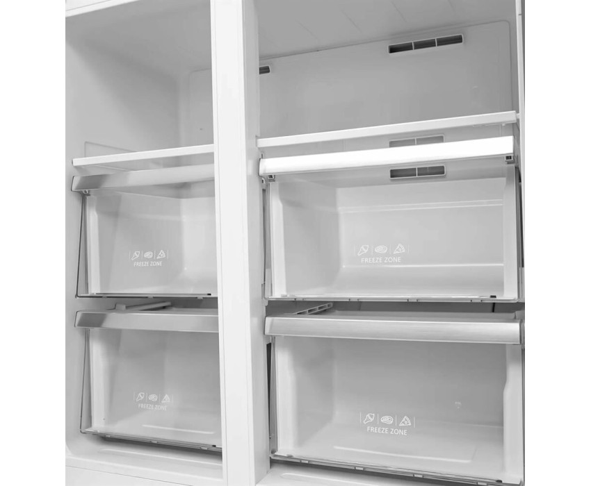 Количество камер: двухкамерный. Расположение морозильной камеры: снизу. Тип управления: электронное. Класс энергопотребления: A+. Система размораживания: No Frost. Общий объем холодильника: 417. Общий объем холодильной камеры: 288. Общий объем морозильной камеры: 129. Уровень шума: 42. Хранение при отключении питания: 12. Количество полок: 2. Количество ящиков: 4. Зона свежести: есть. Количество полок: 2. Система размораживания: No Frost. Тип: Холодильник. Хладагент: R600a. Количество ящиков: 2. Вес (нетто): 92. Количество дверей: 4. Тип компрессора: инверторный. Габариты упаковки (ед) ДхШхВ: 0.9x0.68x1.9. Вес упаковки (ед): 99. Страна производства: Китай. Инверторный компрессор: есть. Количество полок на дверце: 4. Наличие морозильной камеры: есть. Температура морозильной камеры max: -23. Температура морозильной камеры min: -15. Температура холодильной камеры max: 8. Температура холодильной камеры min: 2. Тип дисплея: внешний. Тип вилки: ЕВРО. Cross door: есть. Направление открывания двери: Side by Side. Гарантия: 36 мес.. Цвет: серый. Потребление энергии: 365 кВт*ч/год. Размеры (ШхВхГ): 83.6 х 183 х 63.6 см. Климатический класс: SN, T. Индикация: открытой двери, температуры. Особенности холодильника: дисплей. Функции: защита от детей, режим отпуск, суперзаморозка, суперохлаждение. Класс энергопотребления: A+. Размеры (ШхВхГ): 83.6 х 183 х 63.6 см. Объем: общий 417 л; холодильной камеры 288 л; морозильной камеры 129 л. Цвет: серый. Морозильная камера: снизу, размораживание…