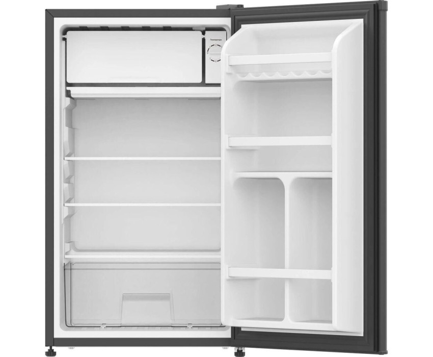 Количество камер: однокамерный. Расположение морозильной камеры: сверху. Тип управления: механическое. Класс энергопотребления: A+. Система размораживания: ручное. Общий объем холодильника: 85. Общий объем холодильной камеры: 77. Общий объем морозильной камеры: 8. Уровень шума: 42. Количество компрессоров: один. Количество полок: 3. Материал полок: стекло. Система размораживания: ручное. Тип: Холодильник. Хладагент: R600a. Количество ящиков: 1. Вес (нетто): 21. Количество дверей: 1. Тип компрессора: стандартный. Габариты упаковки (ед) ДхШхВ: 0.52x0.485x0.85. Вес упаковки (ед): 23. Страна производства: Китай. Количество полок на дверце: 1. Материал дверей: металл. Наличие морозильной камеры: есть. Температура холодильной камеры max: 10. Поверхность: глянцевая. Входное напряжение (макс): 240. Входное напряжение (мин): 220. Тип вилки: ЕВРО. Частота электросети: 50 Гц. Направление открывания двери: вправо. Гарантия: 36 мес.. Цвет: черный. Потребление энергии: 111 кВт*ч/год. Размеры (ШхВхГ): 47.5 х 83.6 х 48 см. Особенности холодильника: LED подсветка. Климатический класс: SN. Количество камер: однокамерный. Класс энергопотребления: A+. Количество компрессоров: один. Морозильная камера: сверху, размораживание ручное. Размеры (ШхВхГ): 47.5 х 83.6 х 48 см. Объем: общий 85 л; холодильной камеры 77 л; морозильной камеры 8 л. Цвет: черный