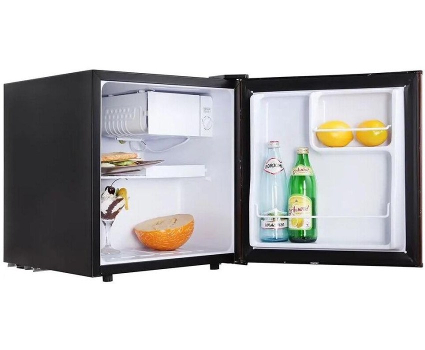 Количество камер: однокамерный. Тип управления: механическое. Класс энергопотребления: A. Система размораживания: ручное. Общий объем холодильника: 50. Общий объем холодильной камеры: 45. Уровень шума: 39. Количество компрессоров: один. Хранение при отключении питания: 10. Количество полок: 1. Материал полок: металлическая решетка. Тип: Холодильник. Общий объем дополнительных камер: 5. Хладагент: R600a. Вес (нетто): 14. Количество дверей: 1. Особенности дополнительных камер: Объем отделения с пониженной температурой.. Тип компрессора: стандартный. Габариты упаковки (ед) ДхШхВ: 0.511x0.47x0.53. Вес упаковки (ед): 28. Количество полок на дверце: 2. Материал дверей: металл. Наличие морозильной камеры: морозильная камера отсутствует. Температура холодильной камеры max: 10. Направление открывания двери: вправо. Гарантия: 12 мес.. Цвет: коричневый/черный. Потребление энергии: 135.78 кВт*ч/год. Размеры (ШхВхГ): 44.5 х 49 х 46.5 см. Особенности конструкции: перевешиваемые двери, регулируемые по высоте ножки. Климатический класс: N. Размеры (ШхВхГ): 44.5 х 49 х 46.5 см. Объем: общий 50 л; холодильной камеры 45 л. Количество компрессоров: один. Морозильная камера: отсутствует. Количество камер: однокамерный. Цвет: коричневый/черный. Класс энергопотребления: A