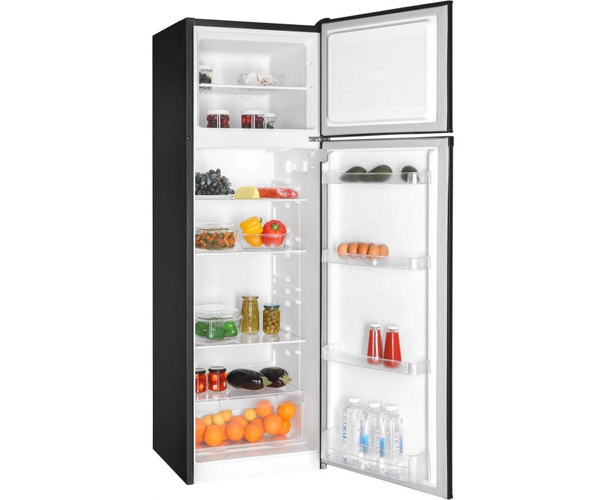 2-камерный, 330 л (ХК 262 л + МК 68 л), класс А+, МК вверху, 4 полки стекло, овощной ящик, LED-освещение, автоматическая система оттаивания, 177х57х63 см, цвет: черный матовый