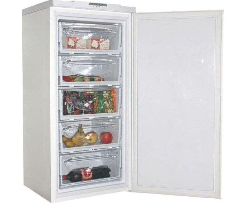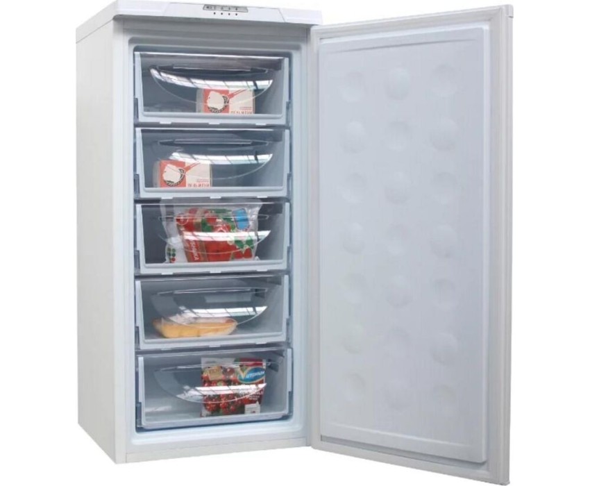 Габариты (ВхШхГ): 122х57,4х61см; Объем: 180л; Вес: 47кг; Однокамерный морозильник на 5 ящиков; Управление: электромеханическое; Размораживание морозильной камеры: ручное; Производительность замораживания, кг/сут: не менее 14; Потребление энергии: 281 кВт/год; Перевешиваемые двери; Цвет: белый