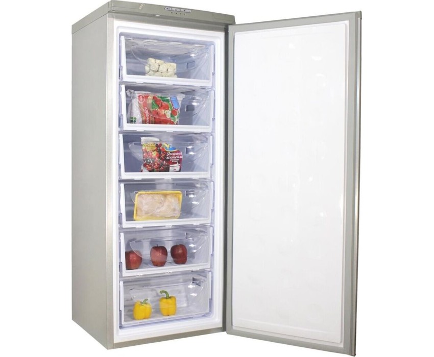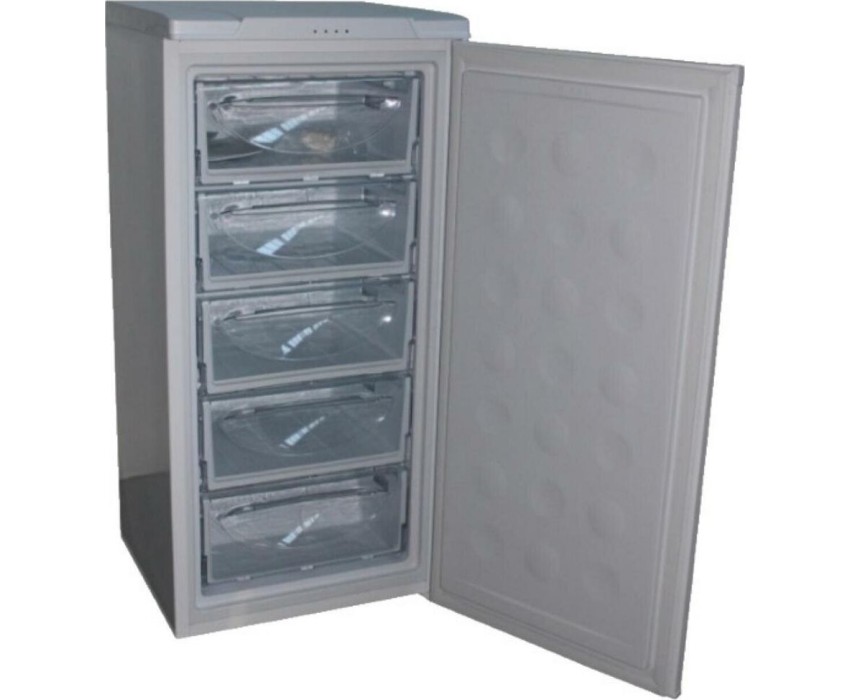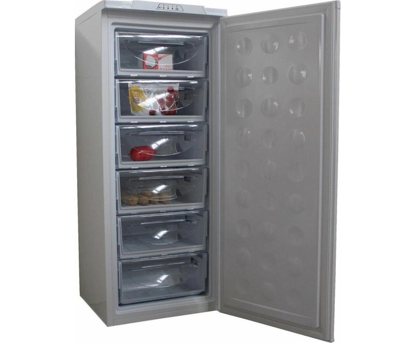 Габариты (ВхШхГ): 142х57,4х61см; Объем: 220л; Вес: 50кг; Однокамерный морозильник на 6 ящиков; Управление: электромеханическое; Размораживание морозильной камеры: ручное; Производительность замораживания, кг/сут: не менее 14; Класс энергетической эффективности: А; Климатический класс: N; Потребление энергии: 305 кВт/год; Перевешиваемые двери; Цвет: металлик искристый