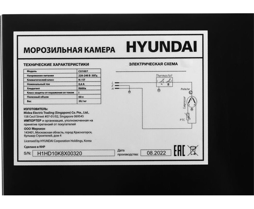 Морозильная камера Hyundai CU1007 черный